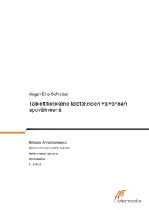Opinnäytetyön tavoitteena on esitellä tablettitietokoneen tekniset ominaisuudet ja joitakin taloteknistä valvontaa helpottavia sovelluksia. Tämän lisäksi esitellään ammattilaisohjel-mistoa ja tulevaisuuden tekniikkaa, joita pilottikohteissa on jo käytetty. Opinnäytetyön ma-teriaali ja sen sisältö on kerätty reilun puolen vuoden tablettitietokoneen kokeilukäytöllä ja tietoa sovelluksista on löytynyt erityisesti Internetissä julkaistavista tekniikka-alan lehdistä.
