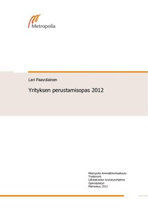 Työn tarkoituksena oli tehdä viitekehys yrityksen perustamista miettivälle henkilölle. Työssä selvitettiin, mistä pitää aloittaa, eli liikeideasta, ja miten sitä jalostetaan liiketoimintasuunnitelmaksi. Liiketoimintasuunnitelman jälkeen käytiin läpi muutama tärkeä laskelma jotka ovat tärkeitä rahoitustarpeen määrän analysoimiseksi. Tämän jälkeen käytiin läpi mitä eri yritysmuodot tarkoittavat ja mitkä ovat niiden perustamistoimet. Seuraavaksi selvitettiin eri rahoitusvaihtoehtoja ja eri yritysmuotojen verotusta. Viimeisenä käytiin läpi kirjanpito ja vakuutusasiat.