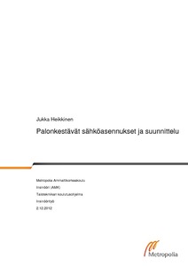 Tässä insinöörityössä selvitettiin palonkestäville johtojärjestelmille asetetut standardien mukaiset toimintakyky-, suojaus- ja asennusvaatimukset, ja laadittiin niiden perusteella palonkestävien sähköasennusten suunnitteluohje. Työssä tarkasteltiin yksityiskohtaisesti kaikkien palonkestävään johtojärjestelmään kuuluvien osakokonaisuuksien vaatimuksia ja esitettiin toimivia ja vaatimukset täyttäviä ratkaisuja.