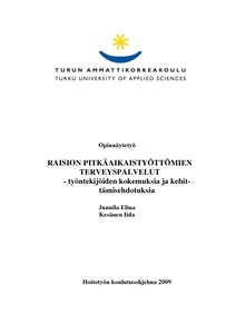 Turun ammattikorkeakoulu ja Raision kaupungin sosiaali- ja terveystoimi sekä työvoimatoimisto ovat yhteistyössä järjestäneet vuodesta 2007 alkaen Raision pitkäaikaistyöttömille suunnattuja terveystarkastuksia. Opinnäytetyö on kaksiosainen ja opinnäytetyössä tarkastellaan pitkäaikaistyöttömyyttä ilmiönä, pitkäaikaistyöttömyyden terveysvaikutuksia sekä pitkäaikaistyöttömien terveyspalveluita. Opinnäytetyössä selvitetään Raision pitkäaikaistyöttömien terveyspalveluissa mukana olleiden työntekijöiden kokemuksia ja kehittämisehdotuksia järjestetyistä terveyspalveluista. Tutkimusongelmat ovat seuraavat: Minkälaisia kokemuksia työntekijöillä on pitkäaikaistyöttömien terveyspalveluista? Minkälaisia kehittämisehdotuksia työntekijöillä on pitkäaikaistyöttömien terveyspalvelujen kehittämiseen?