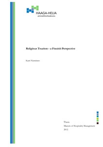 There is a survey made to find out firstly how religious tourism is understood and what the important destinations for religious tourism are. Secondly, it is to find out how much interest there is for different forms of religious tourism, what destinations are interesting and what else is important when travelling for religious motives. A questionnaire is formulated and distributed in two different churches in Finland. The questionnaire consists of mainly structured questions and two open-ended questions. The results are calculated and evaluated using quantitative method with the help of Excel.