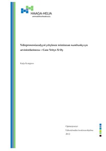 Ydinprosessianalyysi yrityksen toiminnan suorituskyvyn arviointikeinona - Case Yritys X Oy