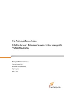 Opinnäytetyön tarkoituksena oli selvittää Jorvin sairaalan kirurgisten vuodeosastojen hoi-tohenkilökunnan osaamista infektoituneen leikkaushaavan hoidossa. Opinnäytetyön tavoitteena oli tuottaa myöhemmin haavanhoitotuotteiden perehdytyksessä ja lisäkoulutuksessa hyödynnettävää tietoa. Opinnäytetyö on osa Meilahden sairaalan teho-osastojen, kipupoliklinikan ja Jorvin sairaalan kirurgisten vuodeosastojen projektia, jossa kehitetään potilasturvallisuutta kirurgisen potilaan ja tehohoitopotilaan hoitotyössä.