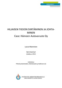 Hiljaisen tiedon siirtäminen ja johtaminen : Case: Hämeen Autovaruste Oy