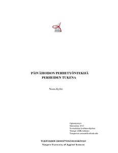 Perheiden varhaisen tuen tarve on lisääntynyt. Päivähoidon perhetyöntekijän työ on uusi ja vielä melko harvinainen perheiden varhaisen tuen palvelumuoto. Sen kehittämiseksi tarvitaan lisää tietoa. Päivähoidon perhetyöntekijän työ on ennaltaehkäisevää, varhaista puuttumista ja matalan kynnyksen tukea perheille erilaisissa elämäntilanteissa.