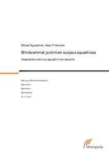 Opinnäytetyömme tavoitteena oli selvittää silmäsuojalasien käyttöastetta squashissa. Selvitimme myös squashissa tapahtuvien silmävammojen vakavuutta ja niiden esiintyvyyttä niin harraste- kuin ammattipelaajienkin keskuudessa. Aiemmat tutkimukset aiheesta osoittavat, että 25 vuotta säännöllisesti squashia harrastavalla on 25 prosentin todennäköisyys saada silmään tai silmänympäristöön kohdistunut vamma pelikentällä. Työllämme haluamme tuoda enemmän esille näönsuojaamisen merkitystä squash-pelissä.