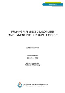 Työssä tutkittiin kuinka pilviympäristö soveltuu ohjelmisto kehitykseen, käyttäen Jyväskylän ammattikorkeakoussa tomivan Skynest-projektin kehittämää FreeNEst ohjelmistokehitys alustaa. Työssä kartoitetaan pilviympäristön suurimmat ongelmat ja hyödyt ohjelmistokehitykselle erityisesti pienemmisssä projekteissa, sekä tutkitaan mahdollisia ratkaisumalleja kyseisten ongelmien ratkaisemiseksi. Suurimmat ongelmat pilviympäristön käytössä pienemmissä projeteissa ovat ympäristön pystyttämiseen tarvittava suuri investointi, hankala ylläpito, sekä mahdolliset tietoturva ongelmat. Tämän lisäksi työssä käytiin läpi ohjelmistokehitysympäristön rakentaminen pilviympäristöön FreeNest alustaa käyttäen, sekä pyrittiin arvioimaan FreeNest alustan tomivuutta tälläisessä ympäristössä. Käyttäen tätä ympäristöä mallina työssä pyrittiin arvioimaan löydettyjen ratkaisujen soveltuvuus käytössä.