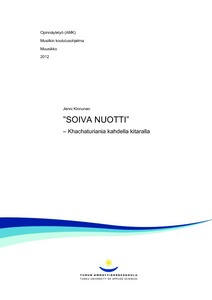 Opinnäytetyöni taiteellinen osuus on ollut sovittaa kitara-duolle kaksi Aram Khachaturianin sävellystä: valssi orkesterisarjasta Masquerade ja Toccata. Kirjallinen osuus käsittelee taiteellisen projektin vaiheita ja tuloksia. Koko työn painopiste oli itse nuotinkirjoittamisessa ja sen ulkoasussa, jonka seurauksena tulin keksineeni käsitteen ” soiva nuotti”.