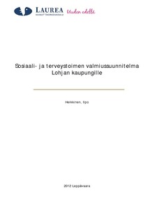 Tässä opinnäytetyöraportissa selvitetään erityisesti kuntia koskevaa sosiaali- ja terveystoimen varautumista ja valmiussuunnittelua, kuvataan itse opinnäytetyöprosessia ja käydään läpi valmiin työn keskeisintä sisältöä. Toiminnallisen opinnäytetyön tilaajana toimi Lohjan kaupungin sosiaali- ja terveystoimi, jonka kanssa tehtiin yhteistyötä nyt syntyneen valmiussuunnitelman luomiseksi.
