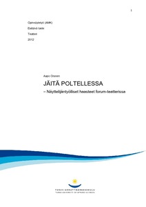 Tutkin kirjallisessa opinnäytetyössäni näyttelijäntyöllisiä haasteita forum-teatterissa. Johdannossa esittelen lyhyesti forum-teatteriesityksen, jota tehdessä idea kirjallisen opinnäytetyöni kirjoittamiseen lähti. Forum-teatterin mukaan nimetyssä pääluvussa esittelen forum-teatterin kehittäjän Augusto Boalin ja kerron kyseisen teatterimuodon tavoitteista sekä jokerin roolista forum-teatteriesityksessä.