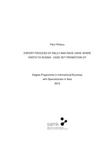 Opinnäytetyön aiheen valitsi case-yritys Set Promotion Oy. Yrityksen vähäinen tieto ja toiminnat viennistä Venäjälle olivat syitä tutkimuksen suorittamiselle. Tutkimus toteutettiin laadullisena tutkimuksena ja sen tulos, vientiprosessi yhdistäen varaosiin ja Venäjään, annettiin valitsemalla parhaimmat vaihtoehdot vientiprosessin eri kohtiin case-yritystä ajatellen.