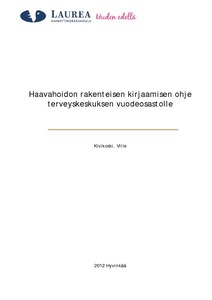 Tämän toiminnallisen opinnäytetyön tarkoitus oli tuottaa haavahoidon rakenteisen tiedon kirjaamisohje Hyvinkään kaupungin terveyskeskusvuodeosasto 12:n käyttöön. Hyvinkään kaupunki oli siirtynyt rakenteiseen kirjaamiseen keväällä 201. Pian havaittiin, että siirtyminen uudenlaiseen kirjaamistapaan tuotti monelle hankaluuksia. Ohjeen tarkoitus oli helpottaa sähköisen potilaskertomuksen käyttämistä ja auttaa luomaan yhtenäistä haavahoidon kirjaamiskulttuuria.