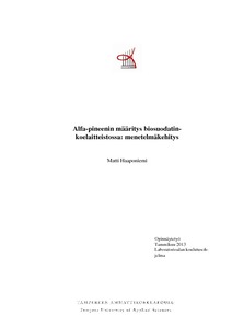 Opinnäytetyössä kehitettiin alustava menetelmä alfa-pineenin määrittämiseksi kaasukromatografilla ja Carboxen/polydimetyylisiloksaani SPME-kuiduilla biosuodatinkoelaitteistosta mutta menetelmä kaipaa vielä lisäkehitystä ollakseen validoimiskelpoinen.