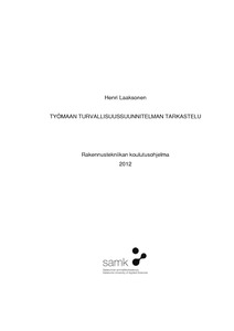 Opinnäytetyöni aiheena oli työmaan turvallisuussuunnitelman tarkastelu. Työssäni on tarkoitus perehtyä siihen, täyttääkö Hartelan turvallisuussuunnitelma ja erityisesti Joutsenen työmaan turvallisuussuunnitelma yleiset säädökset ja ohjeistukset. Työskentelin kyseisellä työmaalla kesällä 2012, joten kohde tuli minulle tutuksi.