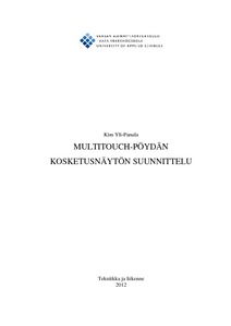 Opinnäytetyön aiheena oli suunnitella kosketusnäyttö multitouch-pöytään. Työssä tutkittiin ja kokeiltiin optisia tekniikoita, joilla harrastelijat olivat kosketusnäyttöjä toteuttaneet. Työ tehtiin yhteistyössä kone- ja tuotantotekniikan opiskelija Jukka Välikankaan kanssa, jonka opinnäytetyön aiheena oli pöydän runko. Työn toimeksiantaja oli vaasalainen Cadpower Oy.