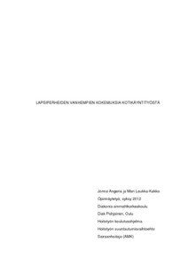 Angeria, Jonna & Laukka-Kakko, Mari. Lapsiperheiden vanhempien kokemuk-sia kotikäyntityöstä. Oulu, syksy 2012, 49 sivua, 3 liitettä. Diakonia-ammattikorkeakoulu, DIAK Pohjoinen, Oulu. Hoitotyön koulutusohjelma, sai-raanhoitaja (AMK).