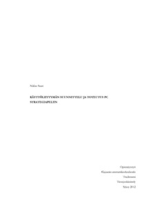 tarkastellaan käyttöliittymäsuunnittelun ja testauksen menetelmiä, pelikäyttöliittymän eri osia sekä niille muodostuvia vaatimuksia. Käyttöliittymäsuunnitteluun on haettu näkökulmia myös perinteisen ohjelmistosuunnittelun