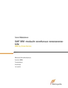 Tämän insinöörityön tarkoituksena oli tuottaa arviointi päätöksenteon tueksi ABB Oy Drives Servicelle, joka on ABB Oy Drivesin after sales -yksikkö. Työ käsitteli SAP WM -moduulia, joka on SAP ERP -järjestelmään saatavilla oleva varastonhallintajärjestelmä. Pääasiallisena tarkoituksena oli selvittää, miten WM-moduuli soveltuisi kohdeyrityksen varastotoimintojen hallintaan. Arvioinnin näkökulmina käytettiin WM-moduulin hyötyjä ja haasteita suhteessa nykyisiin varastotoimintoihin ja niihin liittyviin haasteisiin. Työssä pohdittiin myös mahdolliseen implementointiin liittyviä riskejä ja työmäärää.