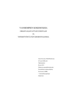 Jenni Jurvanen, Heidi Ruokonen & Laura Salkosalo. Vanhempien kokemuksia omasta kasvattajuudestaan ja yhteistyöstä päivähoidon kanssa. Pieksämäki, kevät 2013, 59 s., 1 liite. Diakonia-ammattikorkeakoulu. Sosiaalialan koulutusohjelma, sosionomi (AMK) + lastentarhanopettajan kelpoisuus.