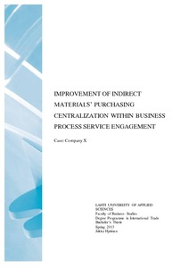 Improvement of indirect materials' purchasing centralization within business process service engagement : case: Company X