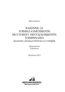 Rakenne- ja toimintaympäristön muutokset yrittäjäjärjestön toiminnassa : Jäsenistön odotukset Etelä-Savon Yrittäjiltä