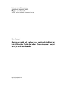 Opinnäytetyön tarkoituksena oli seurata Supro-projektia eli rullaavan budjetoinnin käyttöönottoa Etelä-Karjalan Osuuskaupan majoitus- ja ravitsemislinjalla. Projektia seuraamalla sen eri vaiheet pystyttiin kirjaamaan ja pohtimaan, kuinka onnistuneesti rullaavaan budjetointiin siirryttiin. Aihe valikoitui luontevasti omien työtehtävien perusteella; olin mukana Supron-projektissa mara-linjan tukihenkilönä.