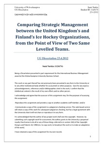 Comparing Strategic Management between the United Kingdom’s and Finland’s Ice Hockey Organizations, from the Point of View of Two Same Levelled Teams.