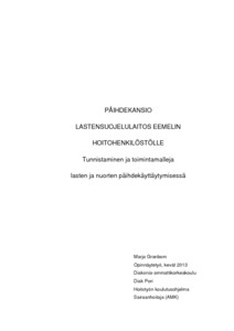 Päihdekansio lastensuojelulaitos Eemelin hoitohenkilöstölle – tunnistaminen ja toimintamalleja lasten ja nuorten päihdekäyttäytymisessä. 45s., 2 liitettä.