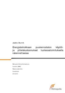 Tässä insinöörityössä tutkittiin tilaajayritys Skanska Talonrakennus Oy:lle tuoteosatoimituksen ja ilmantiiveysvaatimuksen vaikutuksia laskennassa olevan energiatehokkaan puukerrostalokohteen käyttö- ja yhteiskustannuksiin. Skanska Talonrakennus Oy:llä ei ollut aiempaa tietoa puukerrostalotyömaan käyttö- ja yhteiskustannuksista eikä tuoteosatoimituksen vaikutuksista.