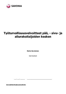 Tämän opinnäytetyön aihe oli tutkia työturvallisuusvelvoitteita pää, - sivu- ja aliurakoitsijoiden kesken. Tarkoituksena oli saada ohjeistus jota voitaisiin käyttää rakennustyömaan valmistelu- ja toteutusvaiheessa, koska varsinkin jaetussa urakkamallissa velvoitteiden valvonta on erittäin haastavaa. Ohjeistuksen avulla velvoitteiden valvonta voitaisiin toteuttaa helpommin. Työn tilaajana toimi rakennusliike Lujatalo Oy.