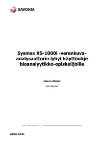Tämän opinnäytetyön tarkoitus oli tuottaa koulun Sysmex XS-1000i -verenkuva-analysaattorille lyhyt ja selkeä käyttöohje bioanalyytikko-opiskelijoiden käyttöön kliinisen hematologian harjoitustunneille. Tavoitteena on tukea bioanalyytikko-opiskelijoiden itsenäistä työskentelyä Sysmex XS- 1000i -verenkuva-analysaattorilla. Opiskelijat saavat koululla perehdytyksen verenkuva-analysaattorin käyttöön, mutta lyhyt käyttöohje nopeuttaa ja helpottaa heidän työskennellessään itsenäisesti analysaattorilla. Käyttöohje testattiin opiskelijoiden käytössä ja se todettiin käyttökelpoiseksi.