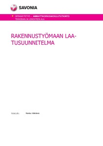 Rakennustyömaan laatusuunnitelma