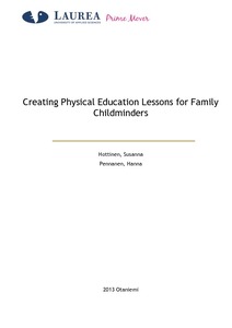 Tämän toiminnallisen opinnäytetyön tavoitteena oli luoda kuusi liikuntatuntia työelämän yh-teistyökumppaneillemme; kolmelle Klaukkalassa, Nurmijärvellä asuvalle perhepäivähoitajalle. Tavoitteenamme oli myös koota näistä liikuntatunneista perhepäivähoitajille ohjekirja. Tar-koituksena oli auttaa perhepäivähoitajia suunnittelemaan jäsenneltyjä ja tarkoituksenmukaisia liikuntatunteja, joita he voivat käyttää viikoittaisissa tapaamisissaan paikallisessa nuorisotalossa. Opinnäytetyömme koostuu neljästä pääkohdasta, tausta ja teoria, toiminnallinen vaihe, ohjekansio ja arviointi.