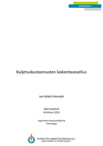 Opinnäytetyön tarkoituksena oli tehdä taulukkolaskentasovellus Jyväskylän Ammattikorkeakoulun logistiikan koulutusohjelmalle kuljetusten kustannuslaskennan opetusta varten.