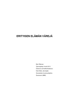Rökman, Mari. Erityisen elämän värejä. Diak Etelä, Järvenpää, kevät 2013, 58 s. Diakonia-ammattikorkeakoulu, sosiaalialan koulutusohjelma, sosionomi(AMK