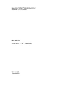 Opinnäytetyö on tarkoitettu tietopaketiksi Sencha Touch 2 -pluginien tekoon. Se pyrkii tarjoamaan perusymmärryksen kirjaston ydintoiminnasta. Tarkoitus ei ole opettaa Sencha Touchin käyttöä vaan tarjota tietoa sen kehittämisestä.