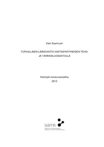 Tämän opinnäytetyön tarkoituksena oli tutkia vastasyntyneiden teho- ja tarkkailuosaston lääkehoidon toteuttamista henkilökunnan näkökulmasta ja tunnistaa lääkehoidon toteuttamisen riskitekijät. Tarkoituksena oli selvittää myös osaston henkilökunnan lääkehoidon osaamista ja sen päivittämistä. Opinnäytetyön tavoitteena oli edistää lääkehoidon riskien tunnistamisella osaston turvallista lääkehoitoa sekä sitä kautta potilasturvallisuutta. Osasto sai käyttöönsä opinnäytetyön tulokset ja voi niiden avulla edistää osaston turvallista lääkehoitoa ja sitä kautta potilasturvallisuutta.