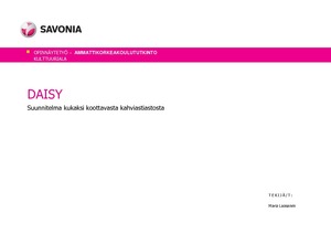 Opinnäytetyön tavoitteena oli suunnitella kahdeksan hengen kahviastiasto ja valmistaa siitä protoyyppi. Tekijän tarkoituksena oli kehittää myös omaa ammatillista osaamista ja perehtyä työn ohella tuotesuunnitteluun. Lähtökohdan työlle antoi aiemmin vuonna 2007 valmistettu Lumme-astiasto, minkä pohjalta tekijä halusi suunnitella uuden kahviastiaston. Lumme-astiaston ideana oli koota astiat tarjottimen päälle niin, että kokonaisuus näyttäisi lumpeenkukalta. Samaa ideaa apuna käyttäen myös Daisy-kahviastiasto suunniteltiin näyttämään kukalta.