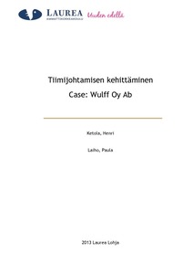 Tiimijohtamisen kehittäminen : Case: Wulff Oy Ab