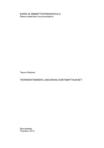 Tierakentamisessa urakoitsijalla on päävastuu laadunvarmistuksen tekemisestä. Urakoitsijan on esitettävä tilaajalle käyttämiensä materiaalien soveltuvuus ja osoitettava rakenteen vastaavan suunniteltua. Opinnäytetyö tehtiin toimeksiantona Kesälahden Maansiirto Oy:lle. Opinnäytetyön lopussa on esitelty Joensuun Kehätiellä tehtyjen kantavuus- ja tiiviysmittausten tulokset sekä pohdittu mittauksiin ja materiaaleihin liittyviä yleisiä ongelmia