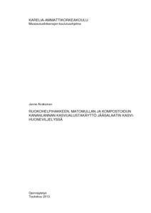 Tässä esitutkimuksessa selvitettiin ruokohelpihakkeesta valmistetun kasvualustan toimivuutta kasvihuoneviljelyssä. Lisäksi tutkittiin matokompostoimalla saadun matomullan sekä kompostoidun kananlannan toimivuutta ruokohelpikasvualustojen lannoitteena. Tutkimus toteutettiin kasvatuskokeena, jossa eri määrillä matomullalla ja kananlannalla lannoitetuissa 15 ruokohelpikennossa kasvatettiin jääsalaattia. Kokeessa tutkittiin jääsalaatin itävyyttä ja tuorepainoa.