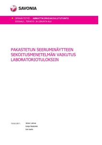 Tässä opinnäytetyössä tutkittiin pakastetun seeruminäytteen sekoitusmenetelmän vaikutusta laboratoriotuloksiin. Työn tarkoituksena oli selvittää, onko vorteksoimalla ja käsin kääntelemällä sekoitettujen seeruminäytteiden laboratoriotuloksissa eroavaisuutta. Lisäksi tarkoituksena oli selvittää, kuinka sekoituksen jälkeinen sentrifugointi vaikuttaa tuloksiin. Työn toimeksiantajana oli Itä-Suomen laboratoriokeskuksen liikelaitoskuntayhtymä (ISLAB). Työn tavoitteena oli antaa toimeksiantajalle tietoa oikeanlaisista pakastetun seeruminäytteen esikäsittelytavoista. Tämän opinnäytetyön antamien tulosten perusteella laboratoriossa voidaan miettiä, millaista sekoitusmenetelmää näissä tutkimuksissa jatkossa käytetään.