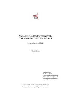 Opinnäytetyöni taiteellinen osio on 1940-luvulle sijoittuva lyhytelokuva Marie. Tein elokuvasta sekä mustavalkoisen että värillisen version. Keskityin valaistuksen merkitykseen näissä kahdessa versiossa. Pohdin, mitkä olivat suurimpia eroja mustavalkoisen ja värillisen version välillä sekä kummassa valaisu toimii paremmin tunnelman luojana.