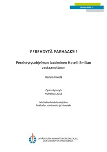 Opinnäytetyön tavoitteena oli laatia perehdytysmateriaali Hotelli Emiliaan, erityisesti vastaanoton perehdyttämisen kehittämiseksi. Työn toimeksiantajana oli Hämeenlinnassa sijaitseva Hotelli Emilia. Tarkoituksena oli ensin kvalitatiivisen ja kvantitatiivisen tutkimuksen avulla perehtyä huolellisesti perehdytyksen nykytilaan kohdeyrityksessä ja sen jälkeen tutkimuksesta saatujen tietojen ja tieto-perustan avulla laatia perehdytysmateriaali, joka päätettiin jakaa kolmeen erilaiseen oppaaseen, joiden avulla voidaan kehittää perehdyttämistä.