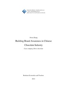 Globaalin kaupankäynnin kehityksen myötä yhä useammat monikansalliset yhtiöt pyrkivät Kiinan markkinoille. Tämä kehitys luo kiinalaisille yrityksille samalla sekä suurempia mahdollisuuksia että suurempia haasteita. Metodeista, tekniikoista ja strategioista huolimatta, ulkomaiset suklaayhtiöt menestyvät paremmin kuin kiinalaiset. Doven suklaa edustaa useita ulkomaisia brändejä ja sillä on absoluuttinen etu kiinalaisilla suklaamarkkinoilla. Siksi tutkimuksen case -tapauksena on Dove-yhtiö. Tavoitteena on selvittää kuinka Dove onnistui luomaan merkkitietoisuutta Kiinassa. Päätavoitteen saavuttamiseksi asetettiin seuraavat osatutkimusongelmat: ensinnäkin, minkälainen markkinointiympäristo suklaalla on Kiinassa? Toiseksi, minkälaiset tekijät vaikuttavat kiinalaisten asiakkaiden kulutuspäätöksiin suklaan suhteen? Kolmanneksi, millainen asenne kiinalaisilla asiakkailla on Doven suklaata kohtaan? Ja viimeiseksi, kuinka Dove markkinoi itseään innovatiivisella tavalla? Teoreettinen pohja ja empiirinen tutkimus pohjustavat näitä tutkimusongelmia. Tulos perustuu internetin kautta välitettyyn kyselyyn ja syvällisempien haastatteluiden metodiin. Tulokset näyttävät vallitsevan suklaan markkinointiympäristön Kiinassa, kiinalaisen kulutuskäyttäytymisen suklaan suhteen ja Doven SWOT-analyysin. Tietoa voidaan käyttää Doven kehittämiseen. Samalla se tarjoaa suosituksia ja ehdotuksia paikallisille kiinalaisille suklaabrändeille merkkitietoisuuden luomiseen. Tällä hetkellä kiinalaiset brändit ovat huonommassa asemassa, mutta hyödyntämällä korkealaatuisen hyvän maun ja kohtalaisen hinnan, ne voivat muuttaa tilanteen.