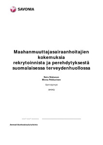 Maahanmuuttajasairaanhoitajien kokemuksia rekrytoinnista ja perehdytyksestä suomalaisessa terveydenhuollossa