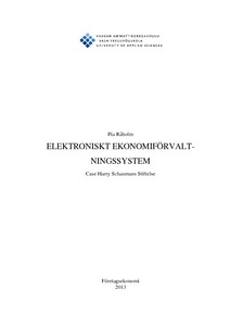 Ämnet för lärdomsprovet är elektronisk ekonomiförvaltning. Elektronisk ekonomiförvaltning innebär de processer, som skall automatisera ekonomisystemet. All ekonomiförvaltning skall kunna skötas i integrerade system och via Internet. Ämnet för mitt lärdomsprov har jag valt, då jag själv har varit projektanställd under tiden då Harry Schaumans Stiftelse övergick till nya ekonomiförvaltningssystem. I lärdomsprovets teoretiska del beskrivs vad elektronisk ekonomiförvaltning är, dess utveckling och hur man går till väga, om man vill övergå till ett sådant system. I den empiriska delen har jag genom intervjuer samt egna erfarenheter beskrivit hur och varför Harry Schaumans Stiftelse har uppgraderat sina gamla system till nya, mera integrerade sådana. Jag har också framställt en manual över de viktigaste dagliga rutinerna då stiftelsen i nuläget endast har en anställd person som sköter detta. Resultatet är en dokumentation över deras övergång till de nya systemen. Mitt lärdomsprov visar, att elektronisk ekonomiförvaltning går framåt i allt snabbare takt men att det fortfarande är en bra bit kvar förrän all ekonomiförvaltning kan anses vara elektronisk. The topic of the thesis is electronic financial administration. Electronic financial administration involves the processes that automate the financial system. All financial management should be handled in integrated systems and over the internet. I have chosen the topic of my thesis due to the fact that I have been a project employee during the time when Harry Schauman Foundation transferred their old system to a new financial management system. The theoretical part describes what electronic financial administration is, its development, and how to proceed if you want to switch to such a system. In the empirical part, I have through interviews and personal experience described how and why Harry Schauman Foundation have upgraded their old systems to newer and more integrated systems. I have also produced a manual on the most important daily routines since the foundation currently only has one employee taking care of this. The result is a documentation of their transition to the new systems. My thesis shows that electronic financial administration is moving forward at a faster pace, but it is still a long way to go until all financial administration can be considered electronic.