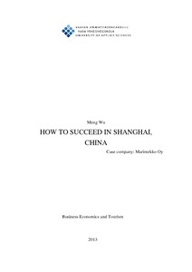 HOW TO SUCCEED IN SHANGHAI, CHINA : Case company: Marimekko Oy
