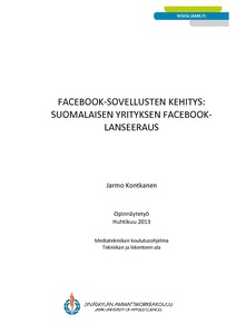 Opinnäytetyö käsittelee Facebook-sovelluskehityksen elinkaarta keskittyen sovelluksen tekniseen kehitykseen ja sen työkaluihin. Työssä käydään läpi Facebookin rajapintoja sekä oleellisimpia toimintoja kampanjamuotoisen sovelluksen toteuttamiseen ja julkaisemiseen.