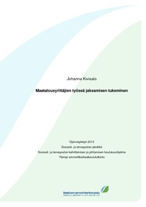 Tämä opinnäytetyö on osa Seinäjoen Ammattikorkeakoulun hanketta "Maatalousyrittäjien työssä jaksaminen ja pidempään jatkaminen". Opinnäytetyön tavoitteena oli yhdessä maatalousyrittäjien sidosryhmien kanssa tunnistaa kehitettäviä keino-ja, jotka tukevat maatalousyrittäjien työssä jaksamista. Kehittäminen kohdistui kolmeen teemaan, jotka valitsin hankkeessa tehdyn kyselytutkimuksen tuloksista. Valitut teemat olivat: maatalousyrittäjien yhteistyön ja ajatustenvaihdon mahdollis-tuminen saman alan ammattilaisten kanssa, vapaa-ajan liikunta-aktiivisuuden lisääntyminen ja työterveyshuoltoon liittymiseen motivoituminen. Tarkoituksena oli, että maatalousyrittäjät jaksaisivat ja jatkaisivat työssään pidempään.